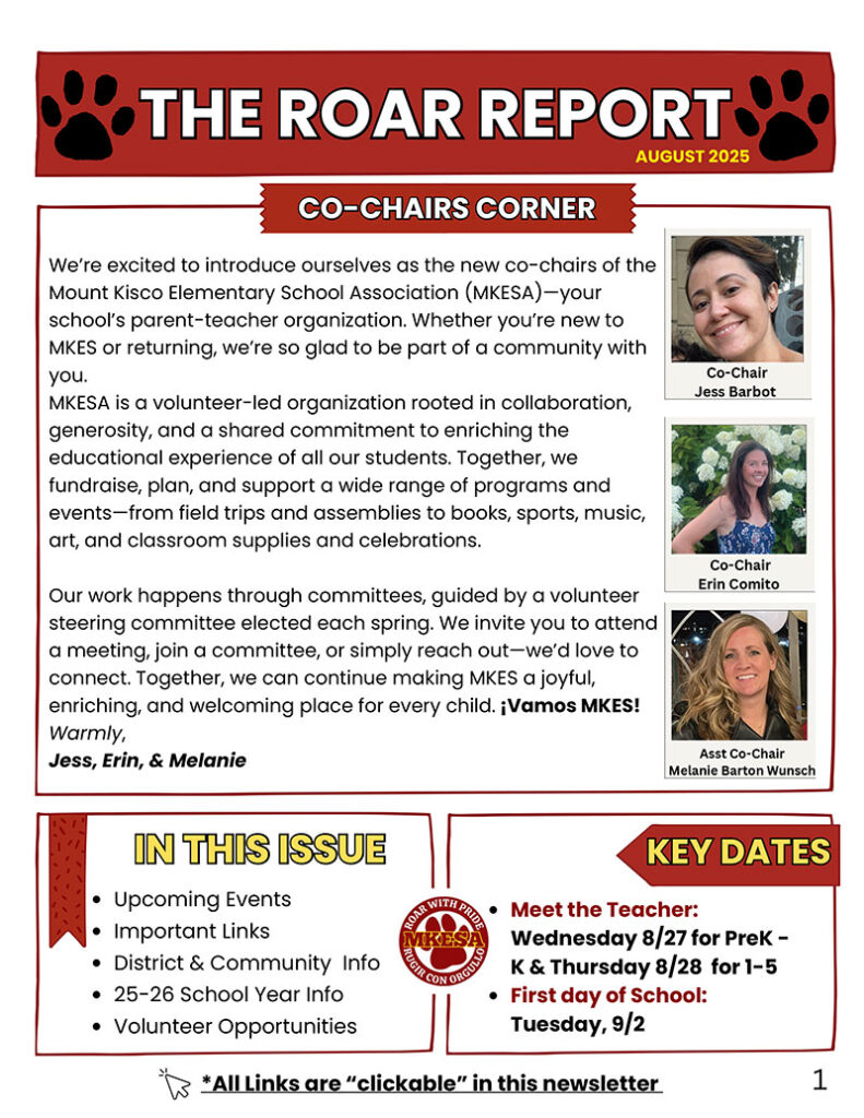 Welcome to the Mount Kisco Elementary School Association (MKESA) home page. We greatly appreciate your interest and participation! As a current MKES parent/guardian, you are a member! If you’d like to get involved (no matter how big or small), we are always looking for volunteers. MKESA’s fundraising efforts support assemblies, educational enrichment, field trips, school events and more for everyone at MKES!